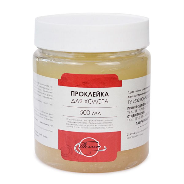 Кроме того, проклейка для холста улучшает сцепляемость грунта с холстом и снижает расход грунта.
