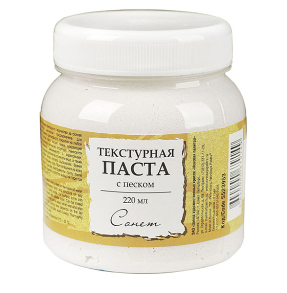 Паста текстурная c песком "Сонет" на водной основе используется для формирования объемного покрытия на любой поверхности.