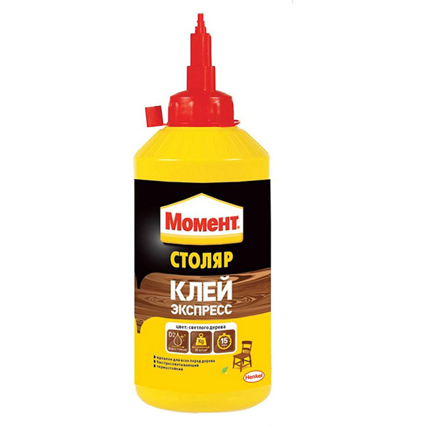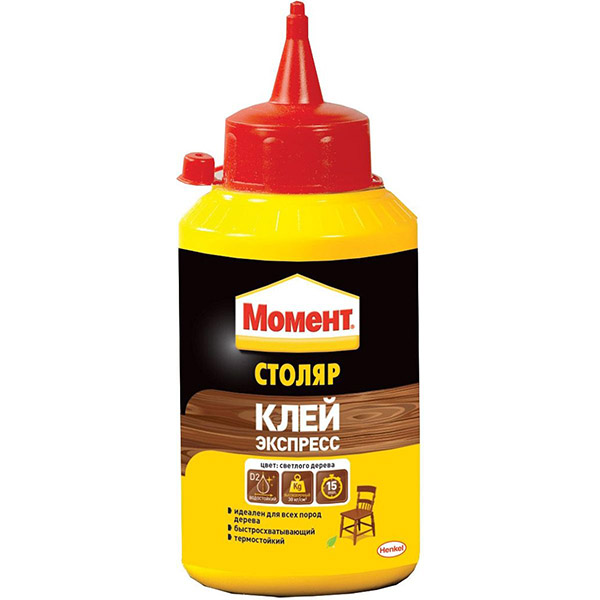 Клей Момент "Столяр" предназначен для склеивания всех пород дерева, ДСП, фанеры, шпона, ламината, картона, облицовочных материалов, фурнитуры, кожи, некоторых пластиков.