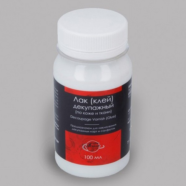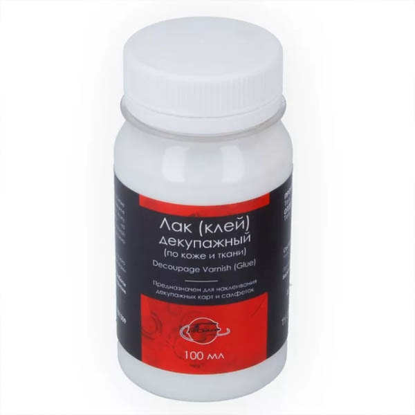 Прозрачный акриловый состав на водной основе, предназначен для наклеивания декупажных карт и салфеток на предметы из кожи, кожзама и натуральных тканей, таких как холст или лён.