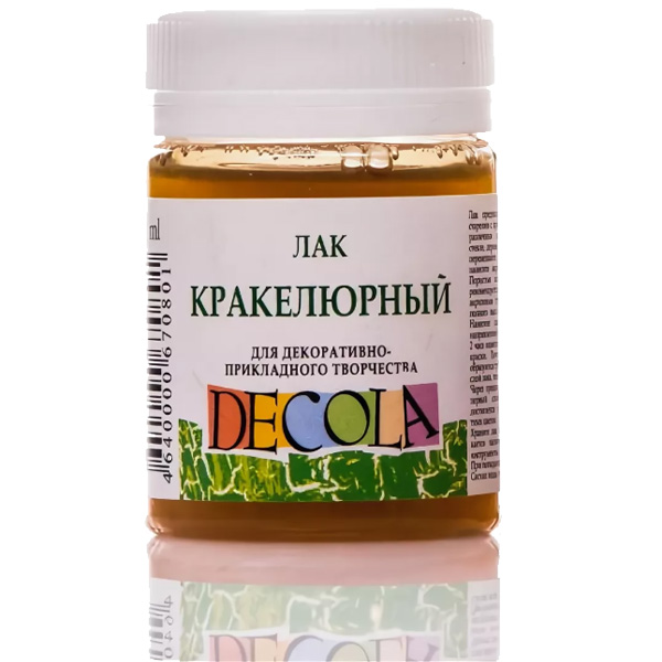 Декоративный однокомпонентный кракелюрный лак "Decola" представляет собой состав для создания эффекта старения с использованием акриловых красок.