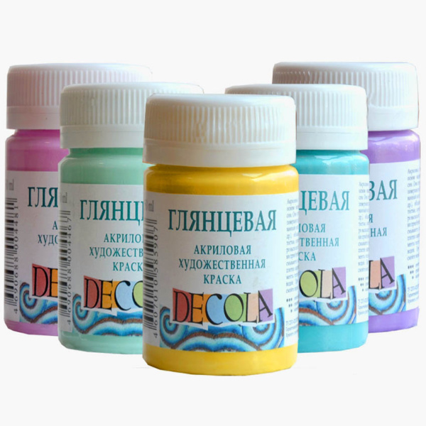 Глянцевые художественные акриловые краски серии DECOLA – воднодисперсные быстро сохнущие краски, содержащие суспензию пигмента в акриловой полимерной эмульсии.