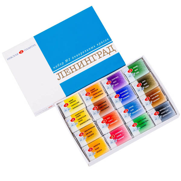 Набор художественной акварели ЛЕНИНГРАД-2 состоит из 16 цветов в кюветах по 2,5 мл.