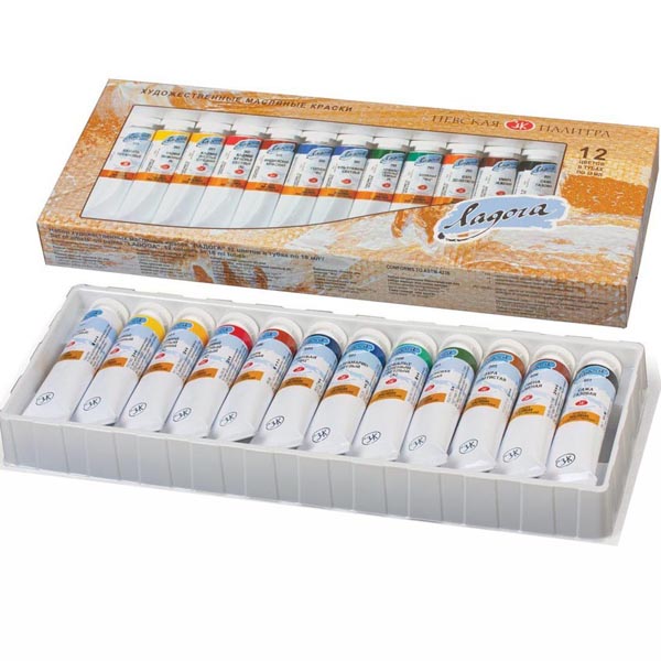 Краски серии Ладога отличаются от высококачественных масляных красок преимущественным применением менее дорогих, но не менее стойких пигментов. При этом аналоги (на этикетке обозначены буквой «А») соответствуют оригинальным цветам по тону. Пигментная часть «земляных» красок (охры, сиены, умбры и т.д.) состоит из натуральных природных пигментов, что обеспечивает, в отличие от синтетических, насыщенность и глубину тонов красок.