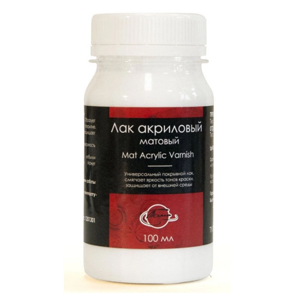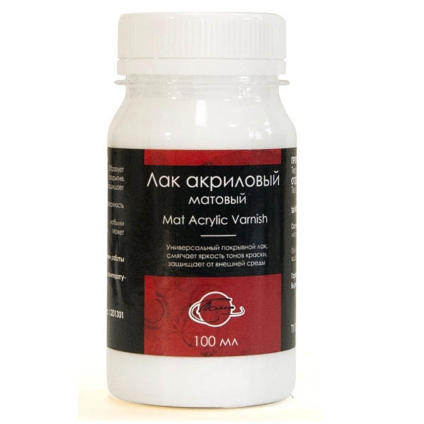 Бесцветный матовый акриловый лак на основе прозрачной акриловой смолы без применения пигментов, в состав добавляются заглушающие и стабилизирующие вещества.
