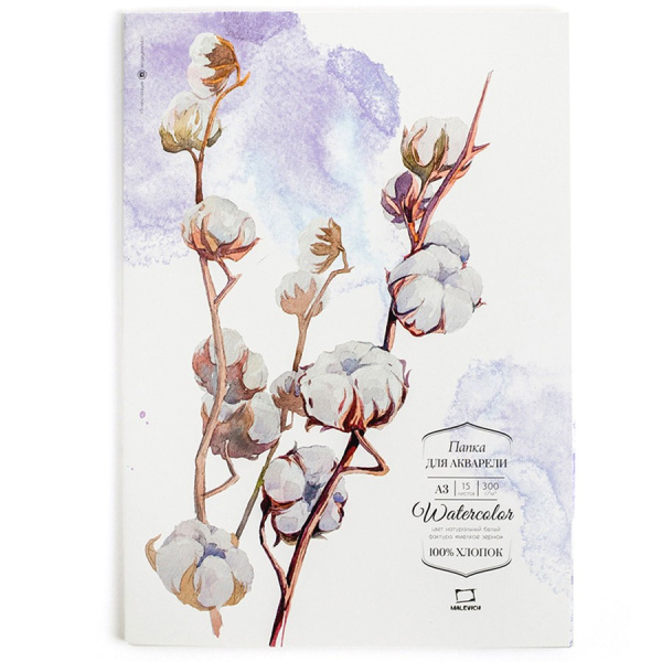 Профессиональная бумага для акварели от "Малевичъ" изготавливается из 100% хлопкового волокна.