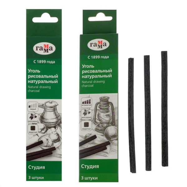 Набор угля натурального ГАММА "Студия" - виноградный, 3шт (экстра мягкий)